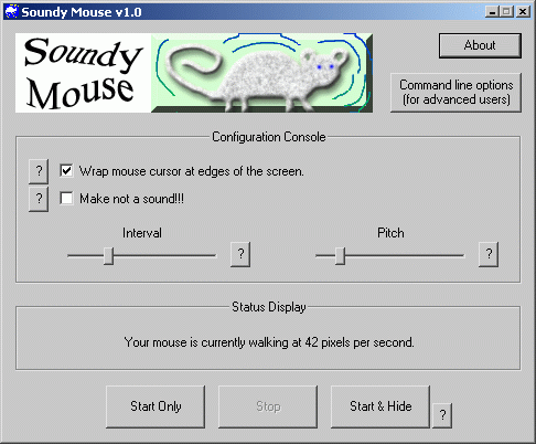 Soundy Mouse allows you to step your computer into the future by adding sound to your mouse movement (uses the PC-Speaker, available on most systems). Additionally, you can give your mouse more freedom with the mouse cursor wrapping technology. This technology makes the mouse wrap around the screen from one side to the other, top to bottom and back again! Notice: This is 100% freeware; No ads, banners, spyware, or nags.