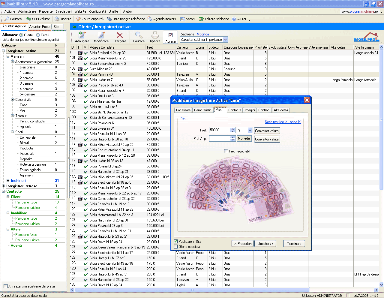 Real Estate software recomanded for Romania Real estate companies (Program imobiliare). ImobilPro este un program informatic profesional pentru gestionarea si managementul tuturor cererilor si ofertelor dintr-o agentie imobiliara precum si publicarea acestora pe internet in site-ul agentiei dvs. si in site-urile de anunturi imobiliare astfel ofertele dvs. vor fii cunoscute de clienti si prin intermediul Internetului. more details at www.programimobiliare.ro