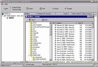 IMI Mailbox Statistics for Microsoft Exchange Server is small utility for Exchange Admin to get, print and export (inventory) Mailbox resources statistics, intended to cover the lack of print capabilities in the current version of the Exchange Admin.