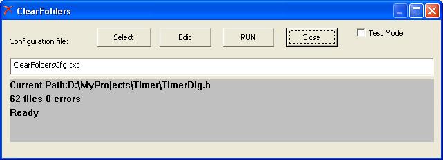 Software for bulk files removal. The program for the frequent removal of temporary files such as (*. ncb *. pdb *. obj). Deletes all files from a specified directory and sub-directories, using a filter file name. Has a test mode, in which the files are not deleted, but only creates a list of files to delete. Can create Log file. Works through a configuration file, which can be specified on the command line.