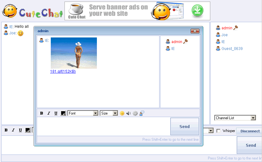 Cute Chat is a full-featured ASP.NET chat program. It's a fast, easy and affordable way to host and manage real-time communication.
