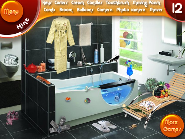 You have a list of object that should be found at bathroom, school room, compartment and hall. Click at them with the mouse and they will disappear. When you found all hidden object you will choose another rom. In case you have trouble with founding click Hint bonus and choose the object you failed to find. Colorful professional graphics and calm music make you feel relax while playing.