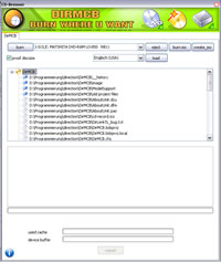 Mobile CD / DVD Burner DirMCB doesn't need to be installed, runs from each mobile data carrier (Stick, cd ...) and is simple to use. Simply drop the Files or Folders you want to burn on the window of DirMCB. If a rewriteable CD / DVD is used, all data on it will be erased automaticly. Create ISO Files, much more devices, full UDFSupport, multilanguage, complete unicode, burn ISO files, Blu-Ray HD-DVD, SCSI,IDE,EIDE,SATA,USB Firewire CD/DVD, Supports CD-ROM BD-RE/ BD-R / HD DVD-R / CD-R / CD-RW / DVD-ROM / DVD-R / DVD-RAM / DVD-RW / DVD+RW / DVD+R / DDCD-ROM / DDCD-R / DDCD-RW,Blu-Ray HD-DVD