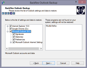 BackRex Outlook Backup is a backup and restore tool for Microsoft Outlook, Internet Explorer and Mozilla Firefox. It allows you to save your current configuration and Outlook data (mail folders, address book, account settings, tasks, notes, calendar, journal, contacts, signatures, stationery, message rules, and all custom preferences). In addition, BackRex Outlook Backup saves all Internet Explorer settings, including favorites, history, proxy settings, fonts, etc.